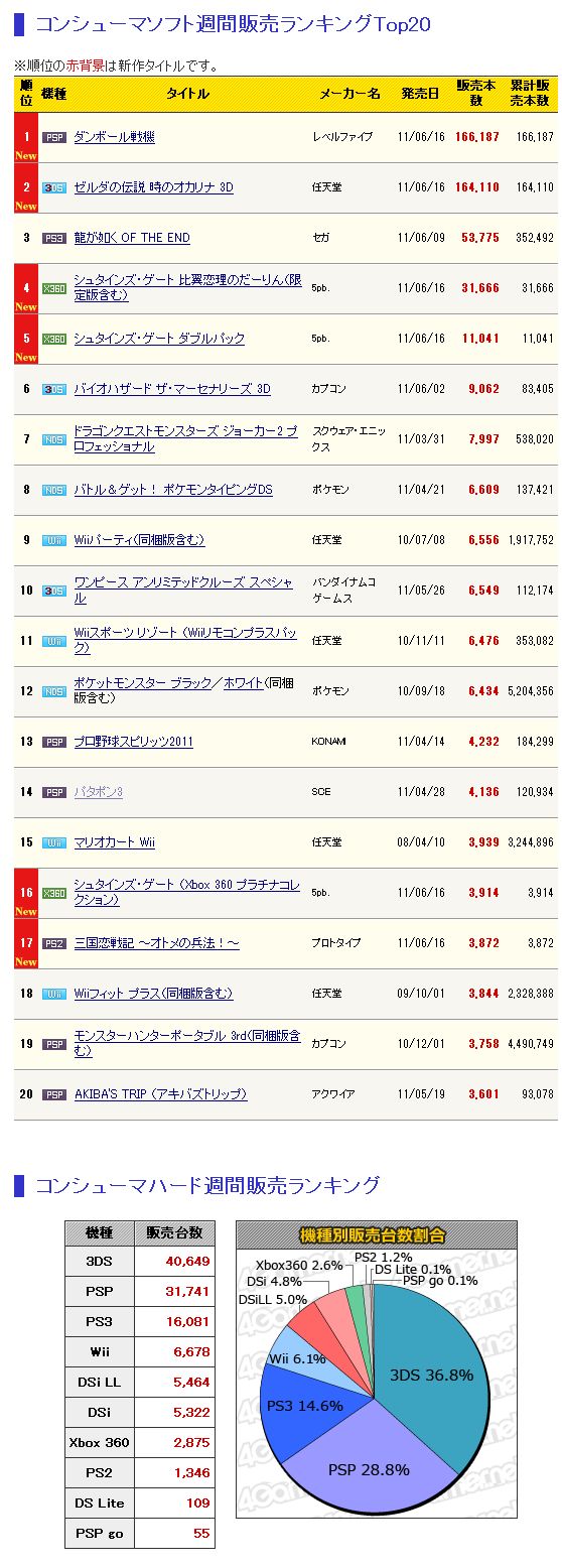 4Gamer.net ― 「ダンボール戦機」「ゼルダの伝説 時のオカリナ 3D」16万本。「比翼恋理のだーりん」は3万本の「ゲームソフト週間販売ランキング」